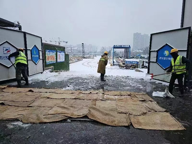 ? ? ? ?巡司河綜合治理二期項目投入除雪作業(yè)人員29人,鋪設(shè)麻袋150件,除雪鏟車一臺,除雪鹽15袋,保障白沙洲大道及南湖部分路段行車安全;巡司河綜合治理一期項目突擊隊51人,頂風冒雪,全力清除項目施工區(qū)域及武梁路面上的積雪;巡司河街污水管道及跨復(fù)興路箱涵工程總承包(EPC)項目齊心協(xié)力,分工明確,高效配合,對現(xiàn)場電纜線及水管已進行防寒保護,聯(lián)合社區(qū)對工地周邊道路除雪去冰;青山濕地二期項目部組織18人突擊隊、鏟車1臺,拋撒工業(yè)鹽0.5噸,草墊麻袋10捆,為青山汽渡碼頭道路、輪渡碼頭行人通道及周邊住戶掃除積雪;南湖生態(tài)活水項目補水通道工程突擊隊20人,拋灑2噸融雪劑,對項目內(nèi)部道路及周邊近2公里道路進行融雪除冰。